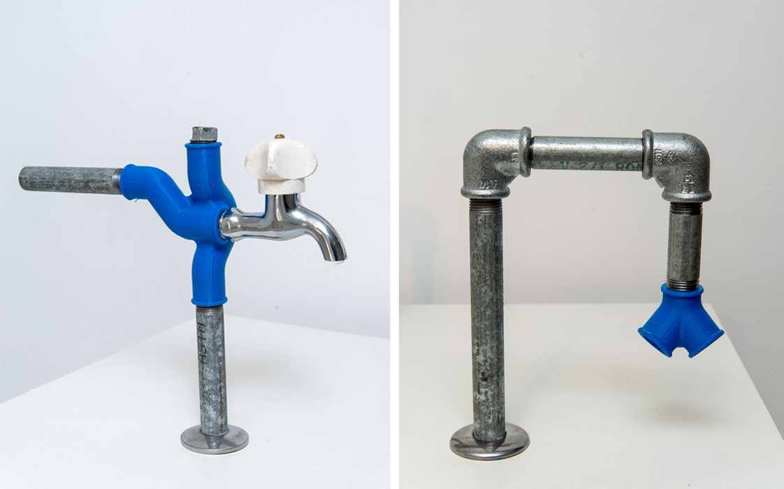 Bypass is a system case study of water pipe fittings. Normally water system has very specific standards of fittings- 90, 45 and T shape angles allowing the pipe to move only in those angles. By using 3d printing for designing and producing the fittings we are no longer bound by the abilities and costs of metal industry. We can create alternative fittings according to how we wish the pipes will go and how we imagine the space to be.