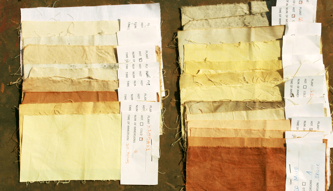 Research based project which explores the full cycle of natural dyeing in the context of contemporary textile production in Rwanda. Currently, Rwanda's local textile market is based on imported fabrics. What is known as ‘african fabrics’ are designed mostly outside of africa. The aim of this project was to explore design possibilities in the field of textile while using local fabric, available techniques and the skills to support the identity of Rwanda's local culture. In Rwanda, there is no tradition of natural textile dying although the method does exist in the region's basketry crafts. The research surrounding this project was based on trial and error, where the team manipulated the processes and techniques used in basketry to comply with textiles. Work developed in collaboration with Eugenia Morpurgo, during the project Atelier Rwanda.